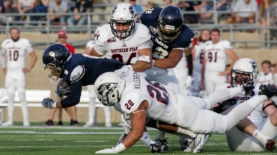 Failing to get a first down after three attempts to gain just one yard, Southern Utah’s Tate Lewis punted out of bounds at the UC Davis 22-yard line to begin the Aggies’ drive 38 seconds into the start of the game.