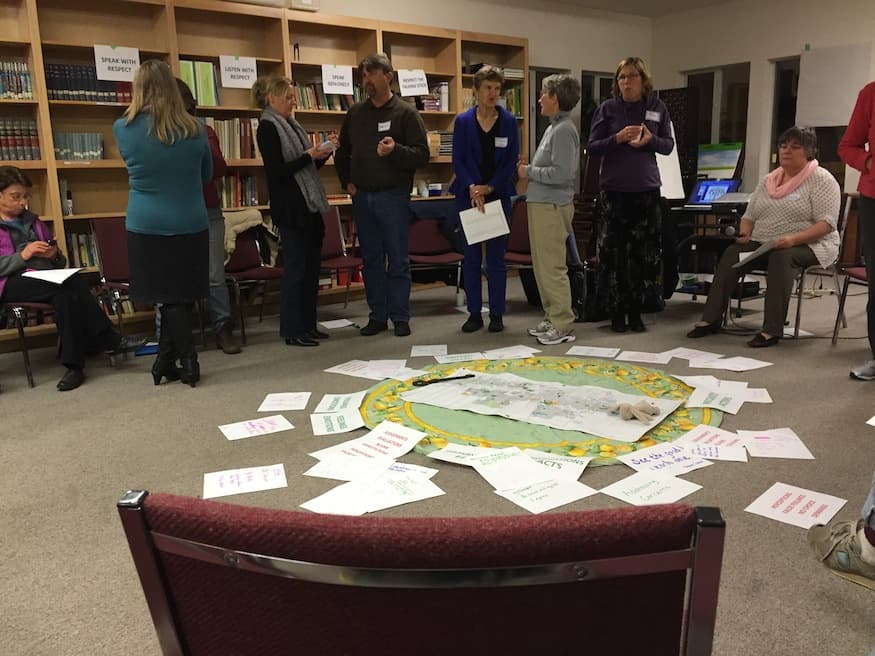 The ACR program is an informal, confidential, mediated event that uses restorative practices such as the circle process, where participants communicate while seated in a circle formation. Program attendees meet face-to-face and resolve conflicts with the help of trained circle co-keepers who help to mediate the conversations.