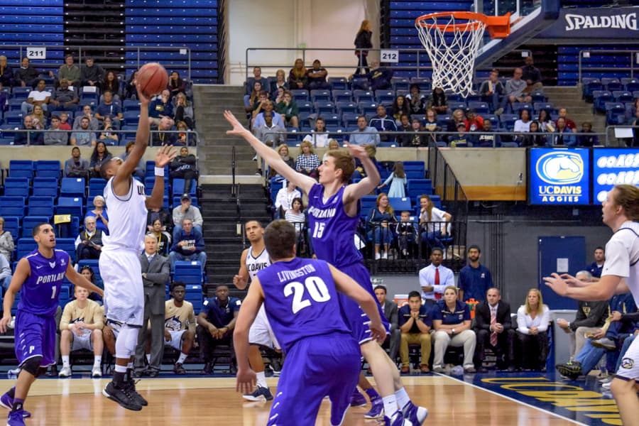 After Friday’s loss that broke the 14-game winning streak of last years team, UC Davis men’s basketball bounced back to get their first win of the season in the second of a three-game homestead on Nov. 15. The Portland Pilots were left in the dust as the Aggies maintained a lead throughout the game for a 79-66 win.