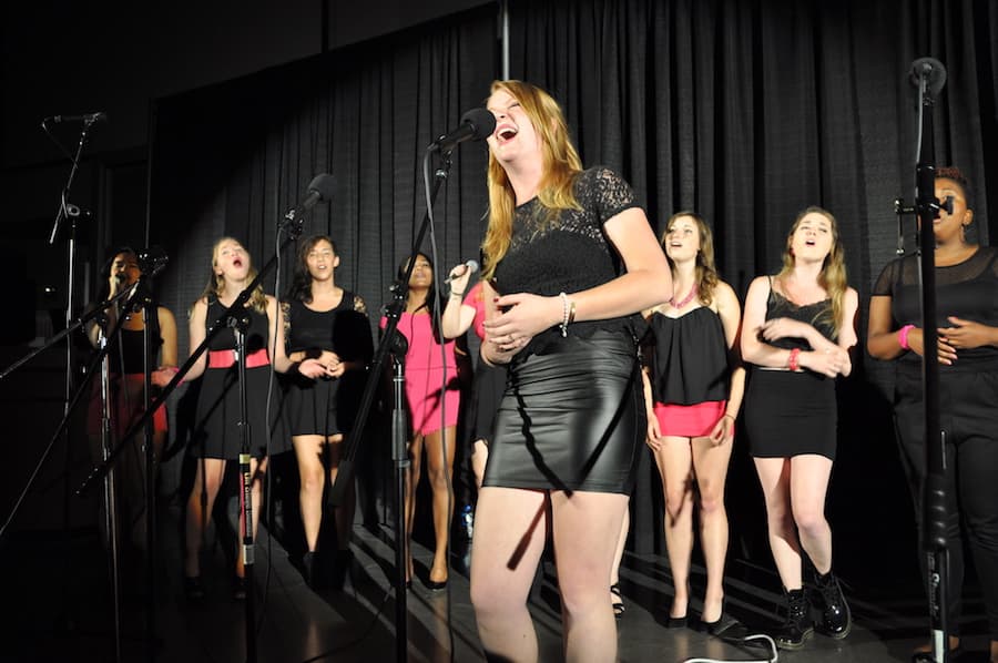 “People think women’s groups can’t have a full sound without bases. We can’t hit those low notes. But we arrange our music to create a chord that sounds really full despite the fact that we don’t have any low voices,” Laskin said.