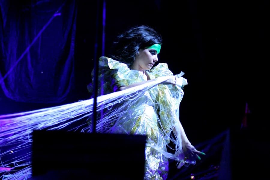 Glancing around, my friend and I took turns pointing out the most unusually-dressed audience members. My friend nodded towards the balcony, where a woman with an elaborate veil over her face was sitting. As we shuffled out of the theater afterwards, I overheard a woman gushing to her friend: “I can’t believe I just saw Joanna Newsom and peed in the same stall as Björk! And to think I almost didn’t recognize her, with that veil on and all.”