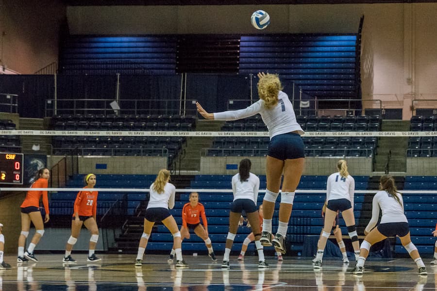 Though the game wasn’t without its obstacles, the UC Davis women’s volleyball team fended off the Cal State Fullerton Titans and emerged from the match victorious with set scores of 25-20, 25-20, 26-28 and 25-21.