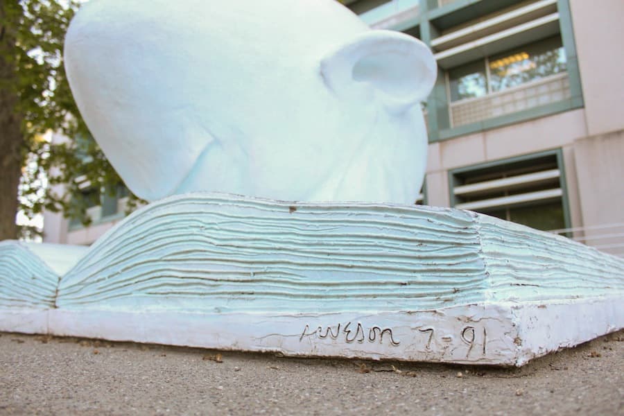 Robert Arneson’s egghead statues, which can be found all over campus, have been a staple of the UC Davis campus for over 20 years. While Arneson had a long and successful career in ceramic art, the eggheads were some of his last works. Their installation on campus began in 1991.