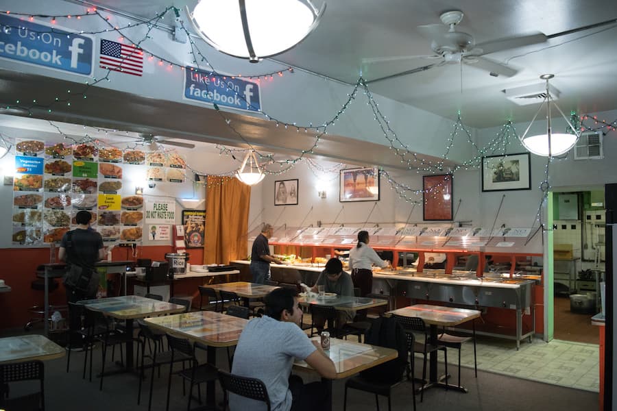 The all-you-can-eat buffet runs from 10 a.m. to 9 p.m. and costs only $5.95, while takeout and dine-in entrees cost between $5 and $7.