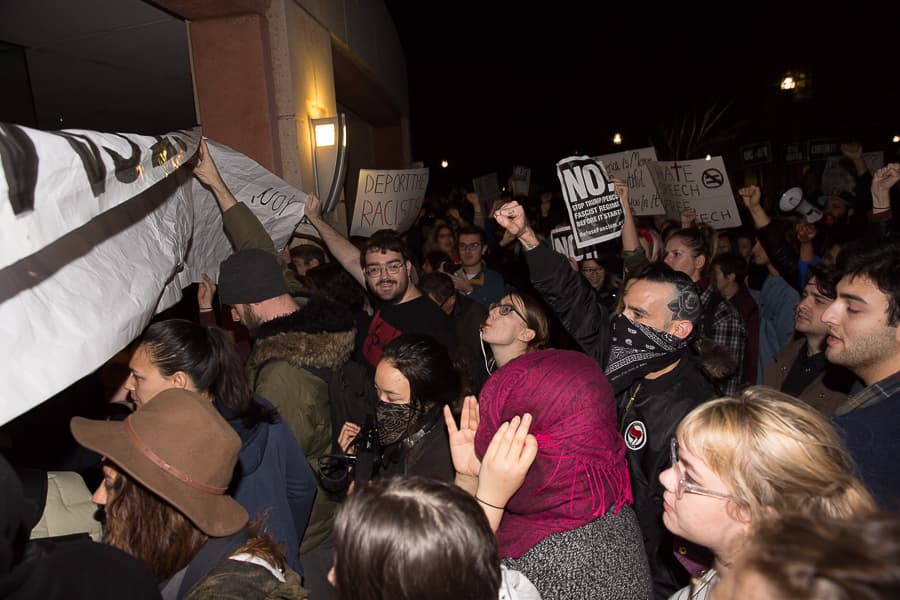 “I am deeply disappointed with the events of this evening,” Hexter said. “Our community is founded on principles of respect for all views, even those that we personally find repellent. As I have stated repeatedly, a university is at its best when it listens to and critically engages opposing views, especially ones that many of us find upsetting or even offensive.”