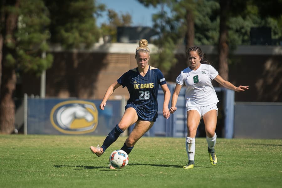 The UC Davis women’s soccer team took the field hours before the men’s team to start off the doubleheader last Thursday, Sept. 28. The team saw some firsts, including its first Big West Conference win to start its record at 1-0 in conference play, 2-9 overall.