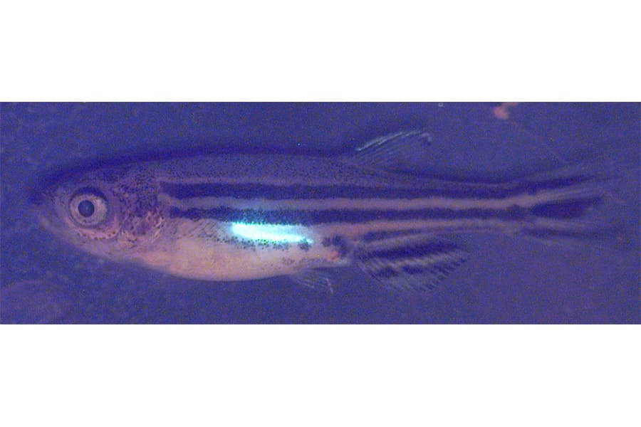 Researchers conquer the zebrafish’s size limitation by genetically engineering the fish to have florescent gonads. Under a microscope, the fish are studied with blue light, making the gonads radiate through the skin. This way, genes contained in the gonads can be studied with less of a headache.