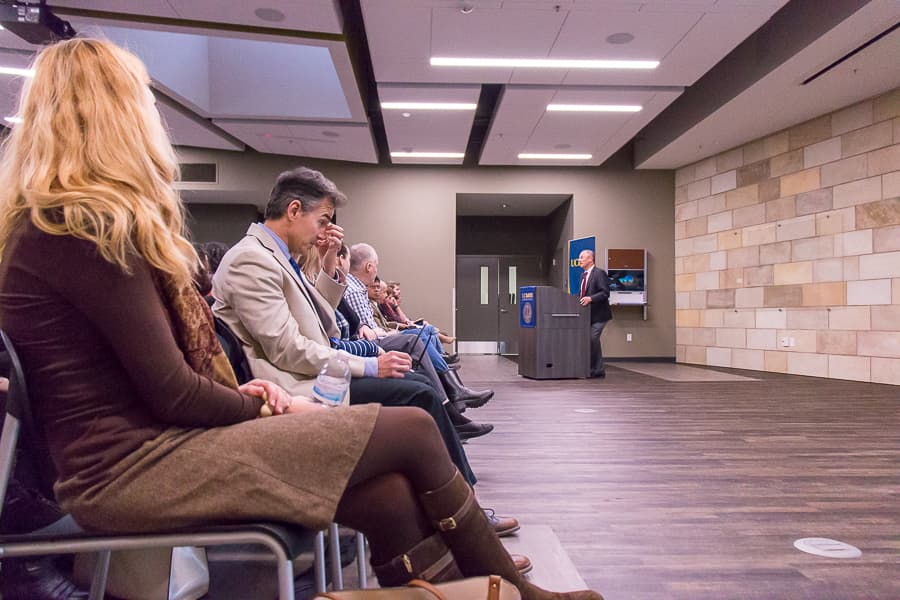 Interim Chancellor Ralph J. Hexter, who was present at the event, posed a question to the audience when he spoke.