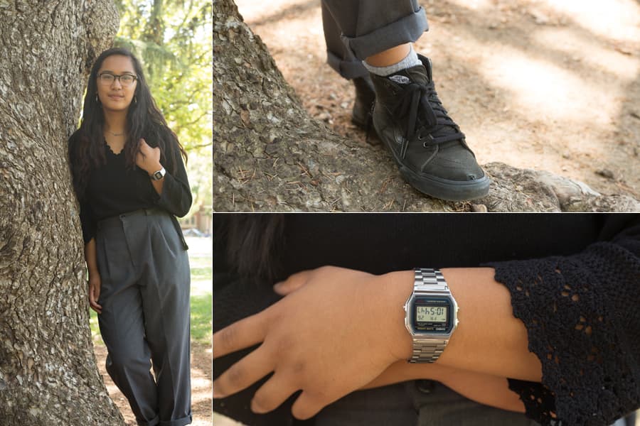 Amihan Redondiez, a first-year gender, sexuality, and women’s studies major, values the art of thrifting and especially layering for the strange spring-to-summer weather transitions. With 50-degree mornings and 90-degree afternoons, it’s impossible to wear one outfit the entire day. Redondiez has the answer to this dilemma.
