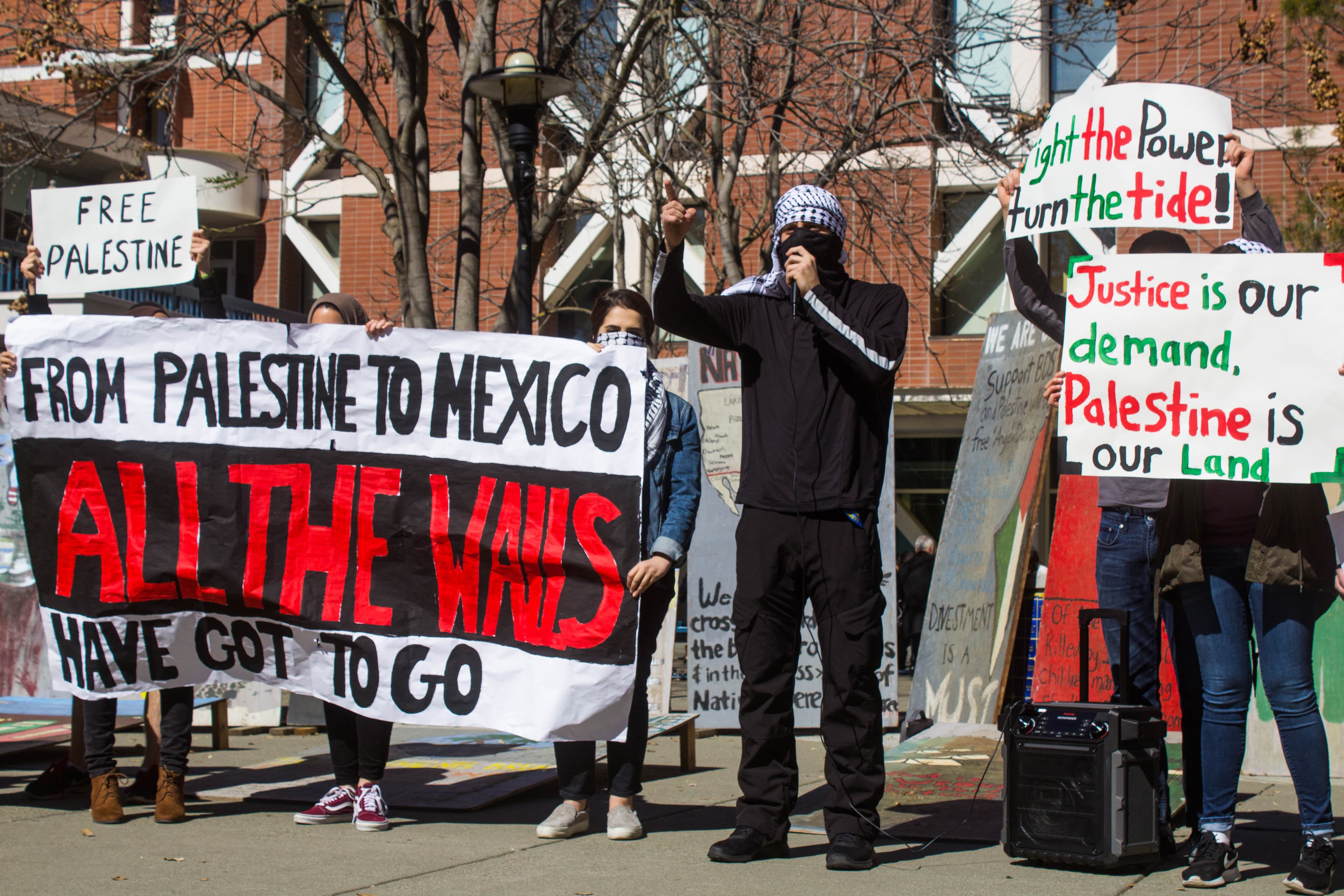 During the event, protesters voiced their disapproval of Israel’s actions and held signs with statements such as “Brick by Brick, Wall by Wall, Apartheid has got to fall,” “Make Israel Palestine Again” and “Justice is our Demand, Palestine is our Land.”