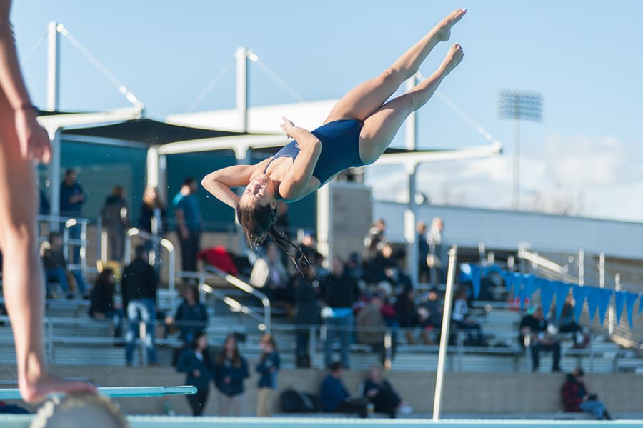 For the diving portion of the competition, held at the Rose Bowl Aquatics Stadium in Pasadena, Calif., it was senior Angelina Proshak who finished fifth overall in the platform event with a score of 211.45, earning her second place in the UC Davis top 10 list record books for the platform. Freshman Katie Truong earned the second highest score by an Aggie on the season (198.90), placing her ninth overall. Juniors Inessa Toropov and Jessica Fernandez finished 12th (187.10) and 15th (174.40) respectively, while senior Ani Vemury finished 16th (166.50) and freshman Amanda Chau in 18th (157.25).