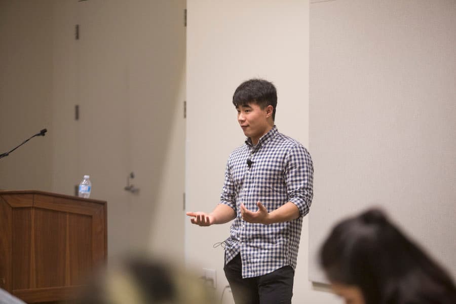 Kyeom then introduced the event’s speaker, Charles Ryu. Ryu told attendees his story of growing up in North Korea and escaping twice before eventually ending up in America.