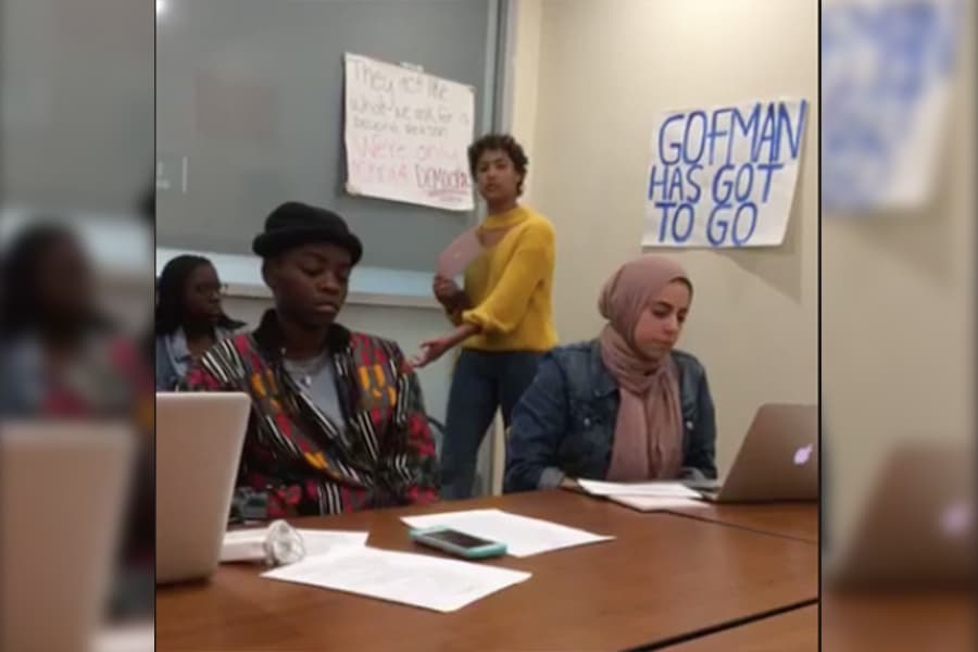 Meeting attendees from the student groups BSU, SDS, Student Workers Ending Racial Violence and other organizations held a printed itinerary with goals and an outline of topics to address, titled “Update on Student Needs.”