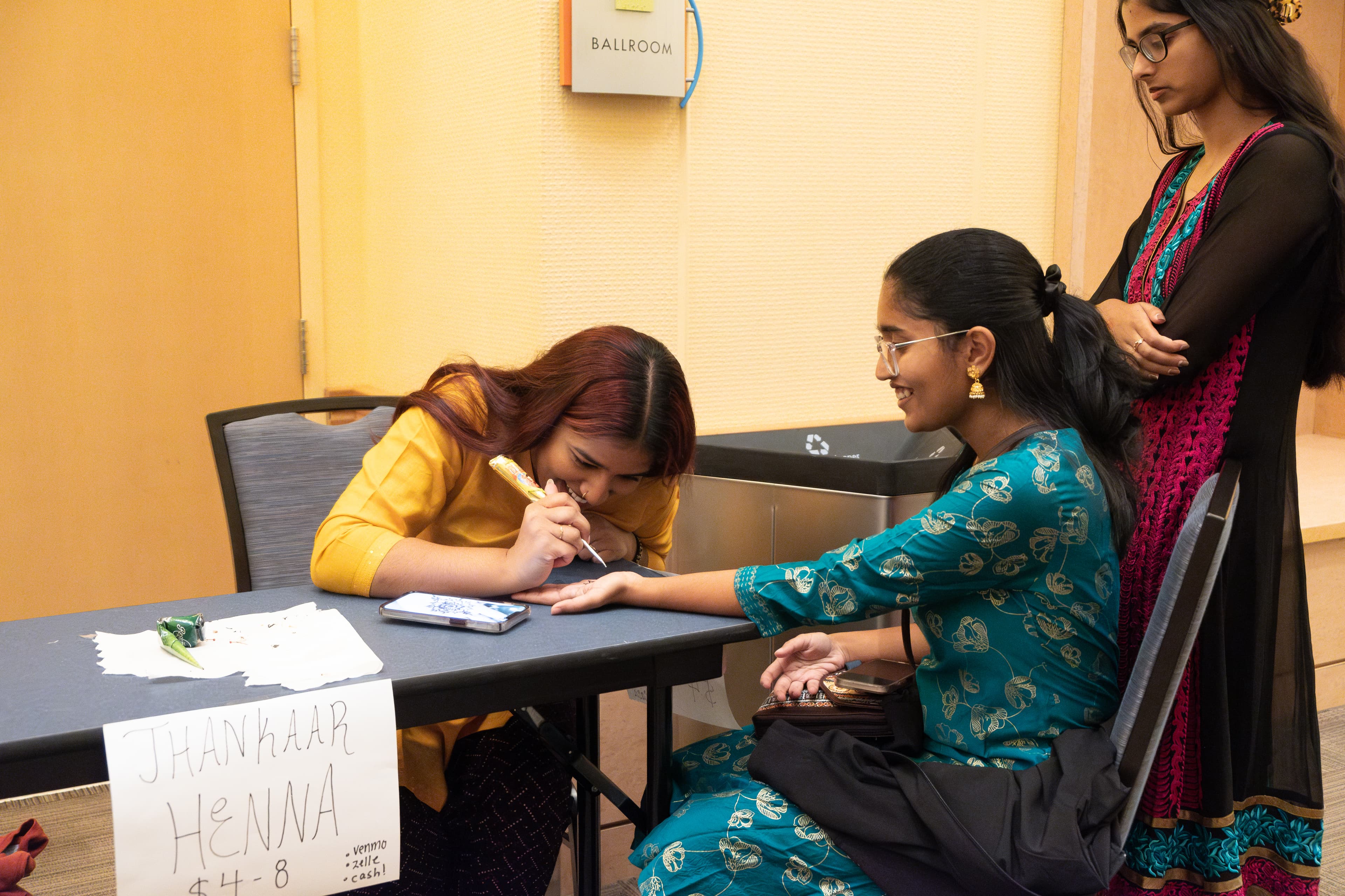 Jhankaar A Cappella, UC Davis’ South Asian/Western fusion a cappella team, also hosted a henna booth at the party. The entire ARC Ballroom was decorated with golden fabric, marigold garlands and string lights draped around the room. UCDISA served rose milk, paapdi chaat and kaju khatli to give students a taste of home. Right after the food, the lights were dimmed and most people gathered on the dance floor, dancing and singing along at the top of their lungs to the music.