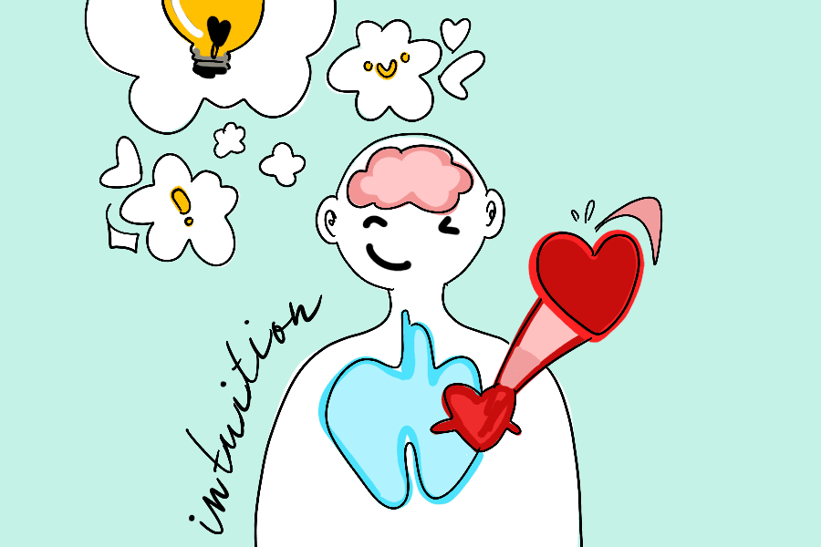 For me, intuition often strikes when I am forced to choose between many options, such as a color scheme for my next digital poster or when I am stuck between going out with friends versus staying in. My intuition tends to guide me to the decisions I make, often without consciously being aware of it — a collection of pink hues for my design feels “just right,” and going out with friends feels like “what I need to do” at the moment.