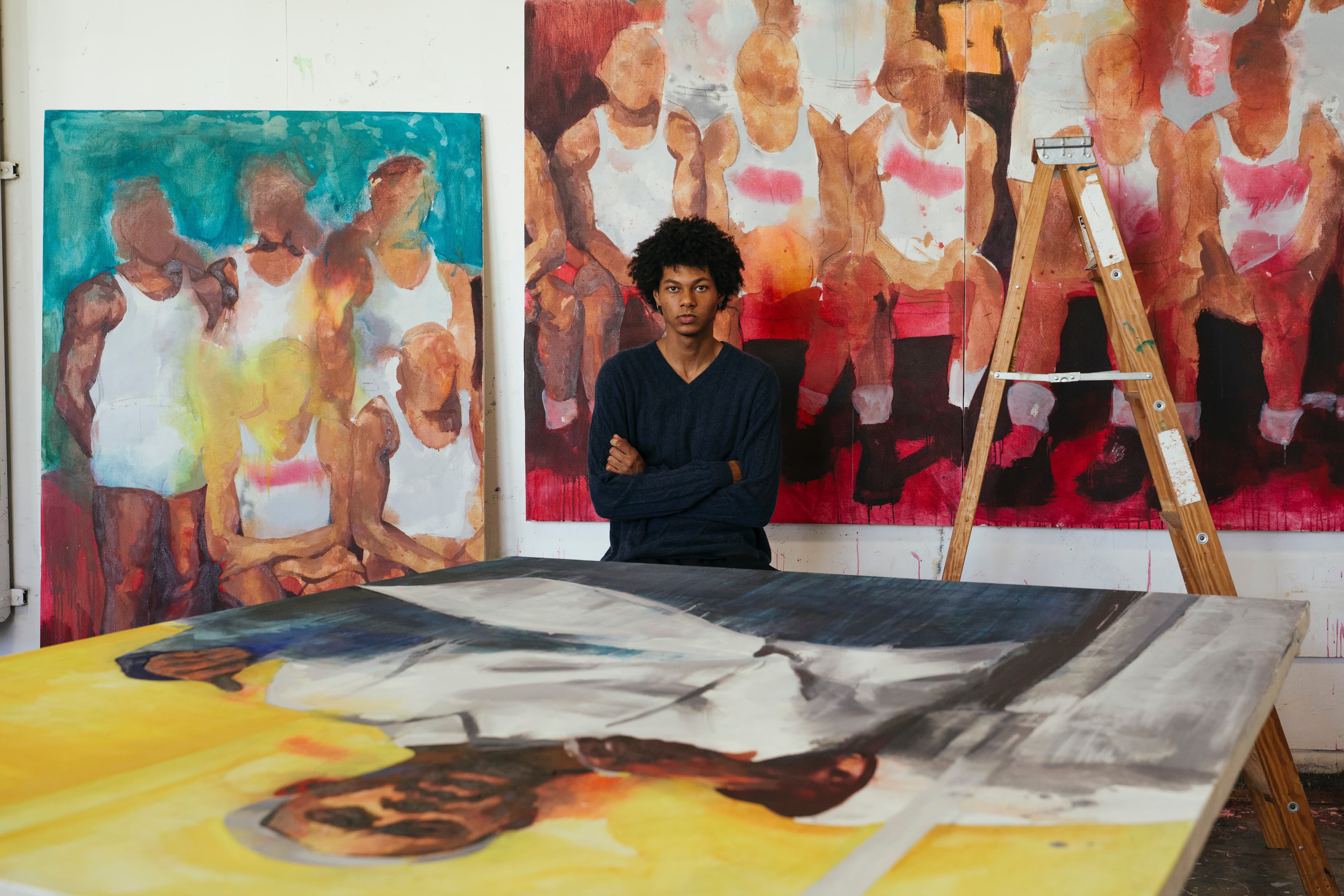 He also frequently draws inspiration from artists in different mediums, such as theater or literature; for example, one painting’s title, “Sugarman,” is sourced from the novel “Song of Solomon” (1977) by Toni Morrison.