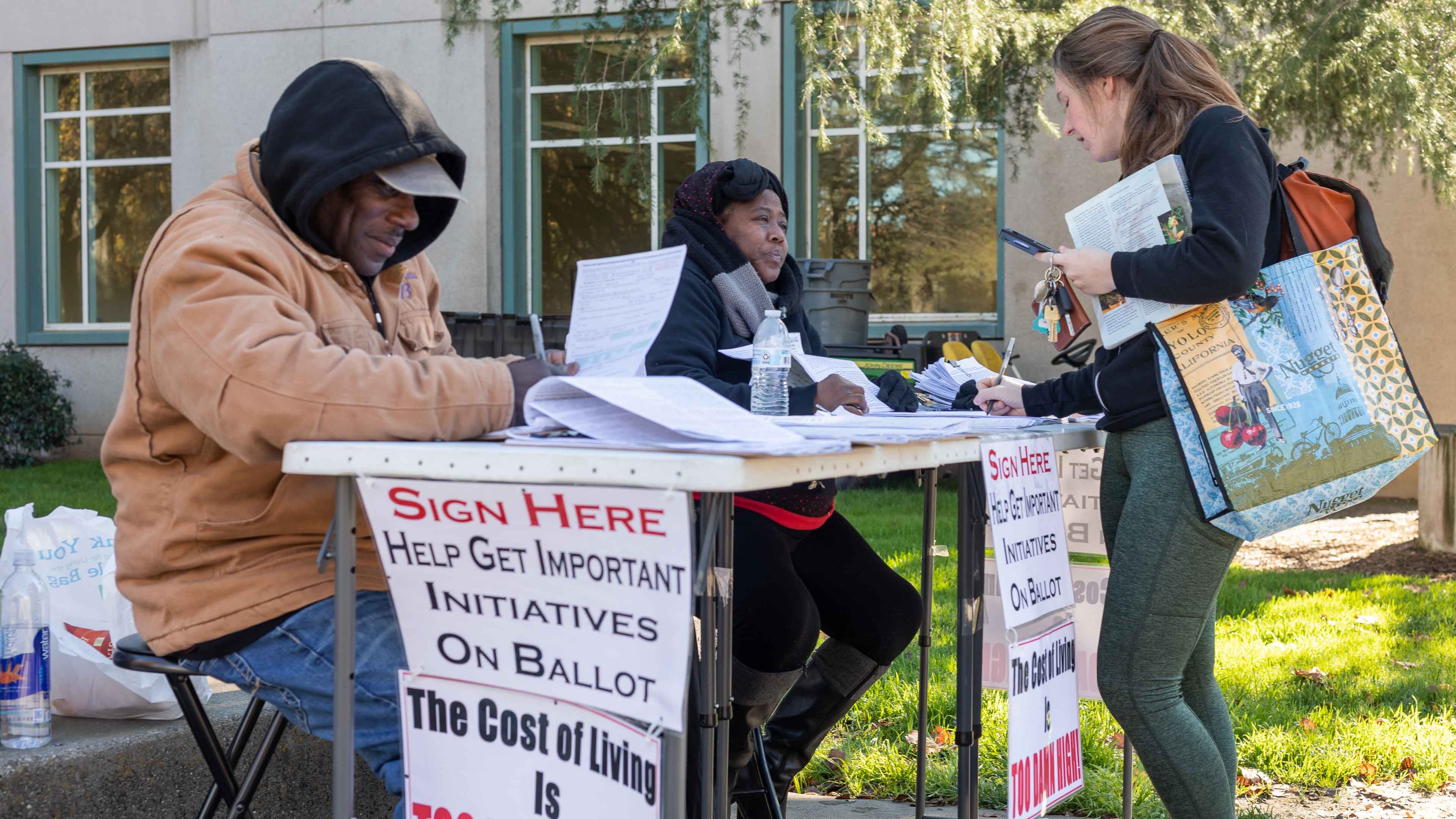 “The cost of living is too damn high!” Petition circulators outside Shields Library tell their story